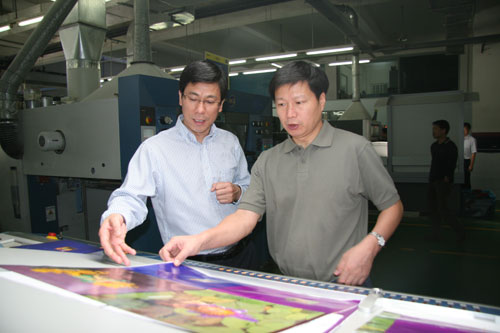 王君平总经理向胡潍康副厅长详细介绍了广博科技园发展情况。近年来,广博充分利用上市优势,在保持原有纸品文具的基础上,积极拓展纸文化产业项目,先后花7000多万元引进国际先进的精品图书、高档纸餐具自动化生产流水线以及相册生产先进设备等,用高新技术加以改造和提升传统产业。在参观印刷分厂时,王君平总经理介绍到,广博现已拥有一流的生产制备能力、一流的印刷包装能力和一流的国际贸易能力,比如广博新研发的石头纸是用磨成粉末的石头作为主要原料,结合其他原料制成纸浆,然后再提炼成纸,制成纸袋。这种纸袋原料来源广,价格竞争力强,且具有韧性好、防水的特性,特别是减少了木材的使用,是非常环保的产品。且近年来,集团公司走科技发展道路,各项设施投入力度加大,良好的经济效益和社会效益受到一致好评。