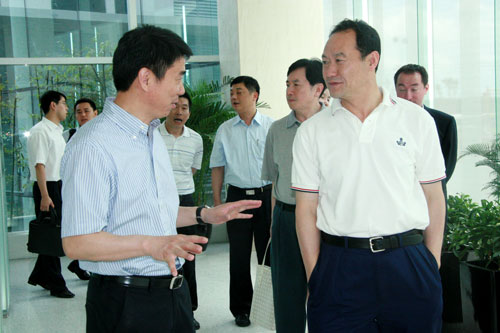 来自全国各地的经销商在印有“同心创未来”的大幅喷绘上签名留念 经销商们在广博综合展厅参观 6月27日上午,伴随着激昂的音乐...