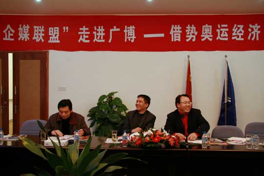 1月12日,由《宁波经济》杂志社组织宁波企业媒体联盟走进广博,一同探讨如何借势奥运经济提升企业品牌,《宁波对外经贸》、《春和报》、《维科报》、《汉通报》、《华茂报》、《博洋报》等多家企业媒体代表参加了本次研讨会。
