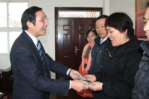 关心关爱员工子弟,,打造幸福广博,这是广博集团近年来各项工作的目标。12月20日,广博集团拨款3万余元,为石碶街道170位民工子弟学校的教师订阅了下一年度的《宁波晚报》。这一举措正是为了感谢民工子弟学校的老师对广博员工子女的培养教育。据了解广博集团目前员工有6000余名,80%是外来员工,近三成员工是企业里的双职工,许多员工都把孩子带到了宁波,石碶街道的多所民工子弟学校就成为广博员工子弟就读的选择,同时广博还通过建立“希望小学”、开展“阳光助学”工程等活动贴心关爱员工。图为广博集团行政总裁舒耀平为民工子弟学校教育赠送报卡。