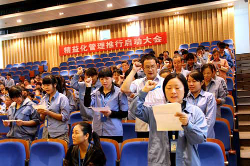 作为本次精益化管理试点单位,四分厂管理层在厂长的带领下,现场举起右手对推进精益化管理进行了庄严宣誓。