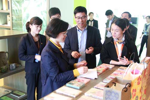 周书记一行先后参观了综合展厅、文具展厅,并在一楼报告厅举行了座谈会。在座谈会上,王总向周书记等领导详细介绍了集团公司近年来的发展现状和未来的发展规划、公司青年职工的工作生活情况、收入水平以及共青团工作开展情况。