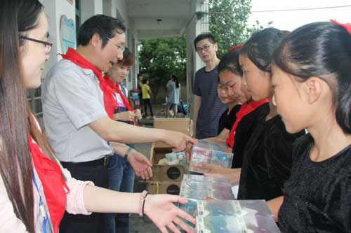 6月1日上午一大早,广博集团行政总裁舒耀平一行就来到了雅戈尔希望小学慰问,在深入了解学校、同学们的情况后,分别向学校各赠送了削笔器、本子、笔等多种文体用品,并致以节日的祝福,勉励同学们珍惜时光、自立自强,做家庭中的好孩子、学校中的好学生、社会中的好公民。