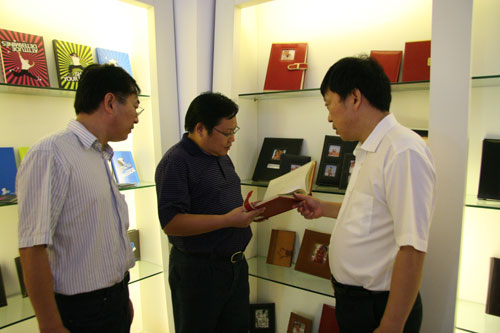 8月27日,湖北省宜昌市考察团一行10余人莅临广博考察指导,此次考察团一行在集团党委副书记朱国章的陪同下,考察团参观了公司样品展示中心、数码车间的生产流水线。