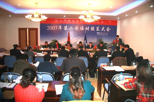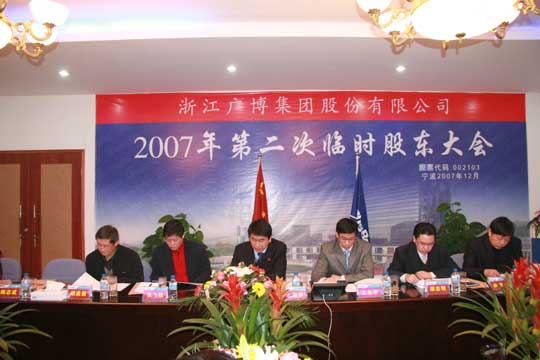 2007年12月18日下午,浙江广博集团股份有限公司2007年第二次临时股东大会在广博科技园如期举行,公司董事、监事、高级管理人员、保荐机构代表及见证律师出席了本次会议,会议由公司董事长王利平主持。