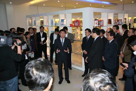在公司的样品中心,董事长王利平向江阴市党政代表团详细介绍了广博的概况外,董事长王利平说,“2005年7月开始,国家对人民币汇率从8.27调整到现在的7.18,出口退税由15%的平均税率普降到5%,以及环境土地资源紧缩等要素的制约进一步加剧,这些变化,迫使企业,尤其是民营企业在不断发展过程中必须充分认识到创新的重要性和必要性,企业要发展,创新应放在第一位。”