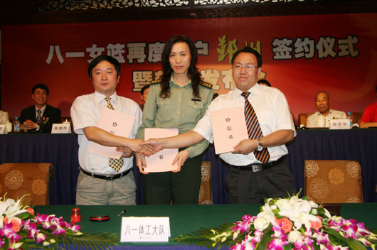 9月24日下午,三方在鄞州又签了第二个三年协议。根据双方签订的协议,自2008年10月1日起到2011年9月30日,八一体工大队将八一女篮的冠名权、服装广告权有偿转让给浙江广博集团。同时,为了激励八一广博女篮卫冕总冠军,广博集团还特意设立了10万元的夺冠奖金。这意味着接下来的三个赛季八一女篮将继续以八一广博文具女篮的名义、以鄞州为主场征战WCBA联赛。