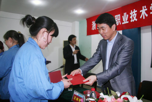 拿到浙江工商职业技术学院大专毕业证书的小杨,又领取了由广博集团提供的6000元奖学金,圆了他多年的大学梦。与小杨一样领到了奖学金的还有另外39名工友。