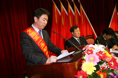 广博集团董事长王利平在本次庆祝大会上代表受表彰单位作典型发言,他说:“获得全国“五一”劳动奖状是对全体广博人的最高褒奖,更是一种新责任、一份新动力。”