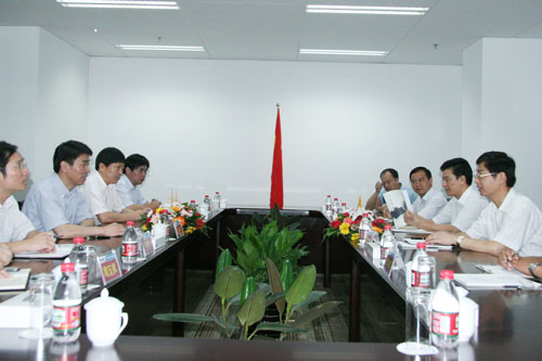 8月24日上午, 江苏省宝应县委林正玉书记一行来到广博集团参观访问,集团公司董事长王利平热情接待了客人,双方在亲切融洽的气氛中进行了交流和座谈。