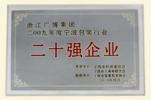 近日,由宁波市经济委员会、宁波市工商业联合会、宁波市包装技术协会联合推选,广博集团被评为“2009年度宁波包装行业二十强企业”。