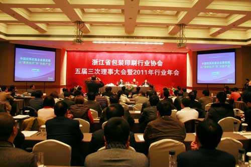 3月3日,浙江省包装印刷行业协会举行五届三次理事大会。全省120多家包装印刷企业负责人欢聚一堂,共谋包装印刷发展大计。市人大副主任、市工商联主席崔秀玲,市新闻广电出版局局长陈佳强等领导到场祝贺。
