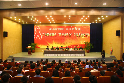 由市卫生局、团市委、市工商联联合举办的红丝带健康包“百校进千企”活动启动,来自宁波诺丁汉大学等三所高校的志愿者将一个个红丝带健康包,发放给广博集团的职工。至本月月底,这三所高校志愿者将会进入本地各类大型企业,向企业职工宣传艾滋病防治知识,发放3000个红丝带健康包。同时,发放3000份调查问卷,对外来务工人员防艾情况进行调研。