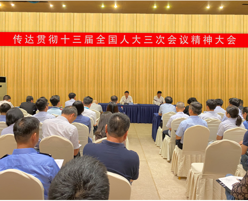 王利平传达了习近平总书记参加有关代表团审议时的重要讲话精神和十三届全国人大三次会议主要日程。他指出,这次全国人大三次会议是在全国防疫复工的特殊时间节点召开的具有特殊重要意义的大会。大会展现了中国特色社会主义制度自信和优势,体现了人民至上的制度本质。