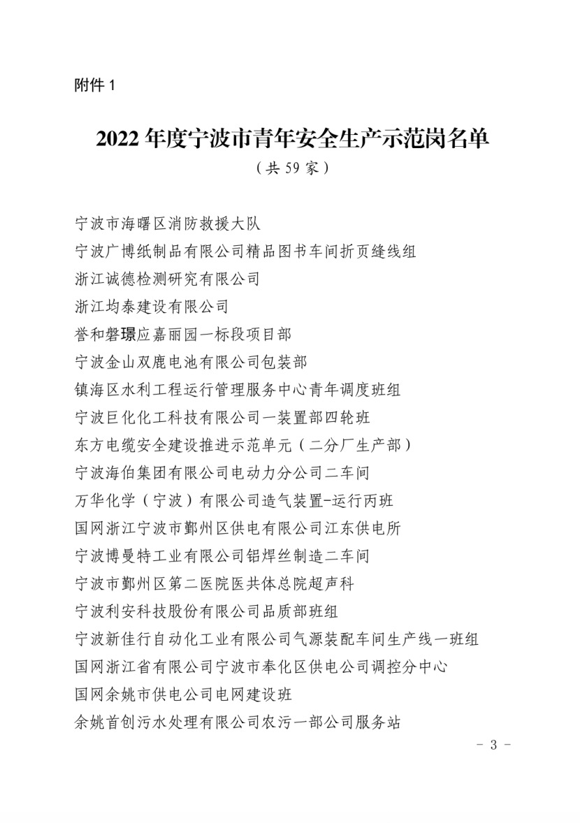 安全重于泰山。3月13日,广博纸制品有限公司精品图书车间折页缝线组荣获2022年宁波市青年安全生产示范岗。