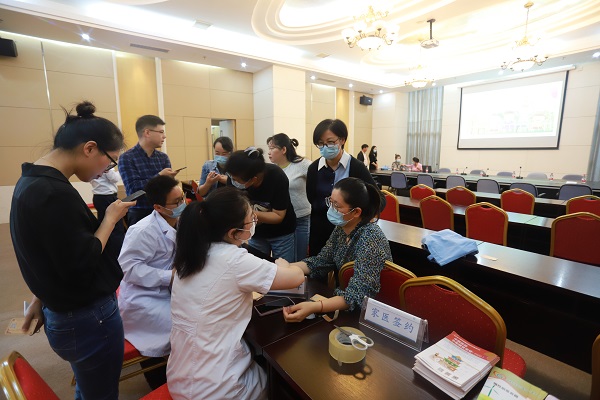活动现场许多员工积极前来咨询,医护人员耐心讲解。医生们通过“望闻问切”等方式现场了解员工的身体状况,并给出了在饮食、生活习惯等方面应注意的事项,医护人员也耐心地为每一位前来就诊咨询的员工免费测量血压,进行健康指导,对药品的适应症、用法及注意事项等医学常识进行详细讲解,同时还贴心准备了“拒绝脂肪肝”健康讲座,深受大家欢迎。