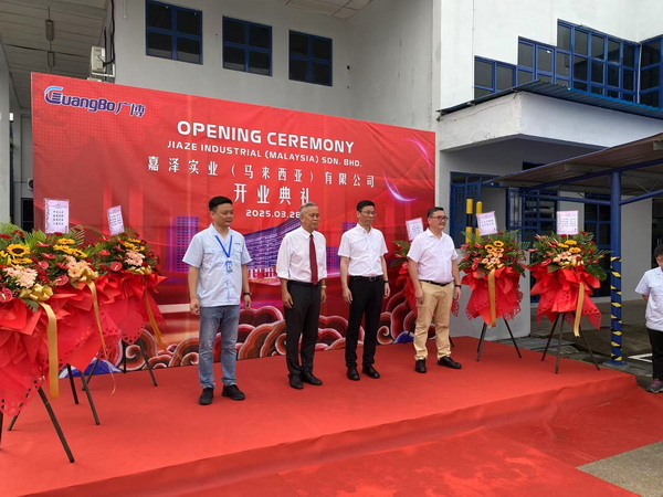 3月28日,广博集团位于马来西亚槟城的新工厂举行了隆重的剪彩仪式,这标志着集团公司第三个海外生产基地正式启用。总经理王君平亲临剪彩现场并致辞。