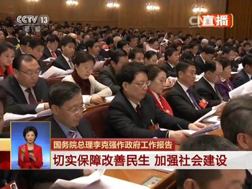 3月5日全国人大代表广博集团董事长王利平正在聆听李克强总理所作的《政府工作报告》