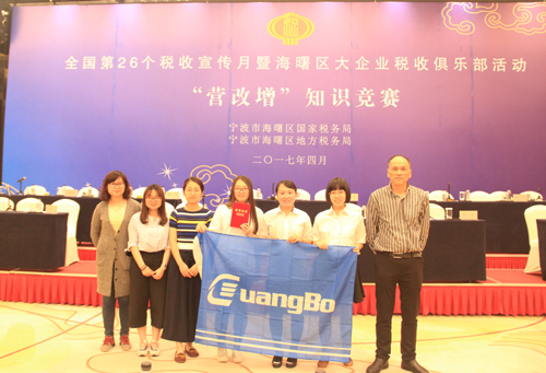 本月是全国第26个税收宣传月,4月24日,海曙区国税局、海曙区地税局联合举办了一场“大企业税收俱乐部活动暨‘营改增’知识竞赛”活动,包括广博集团在内的9家企业派出代表队参加了本次活动。