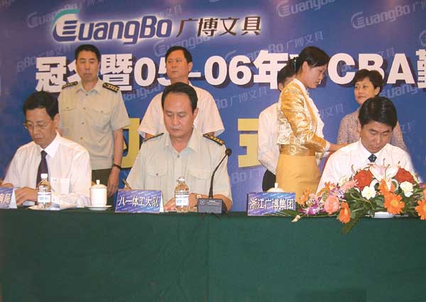 8月5日,解放军八一体工大队和浙江广博集团的“八一广博文具女篮”冠名签字仪式在北京举行。当八一体工大队朱家志队长与广博文具的掌门人王利平董事长的手紧握在一起的时候,八一广博文具女子篮球队将与广博集团一道开始新一轮的征程。